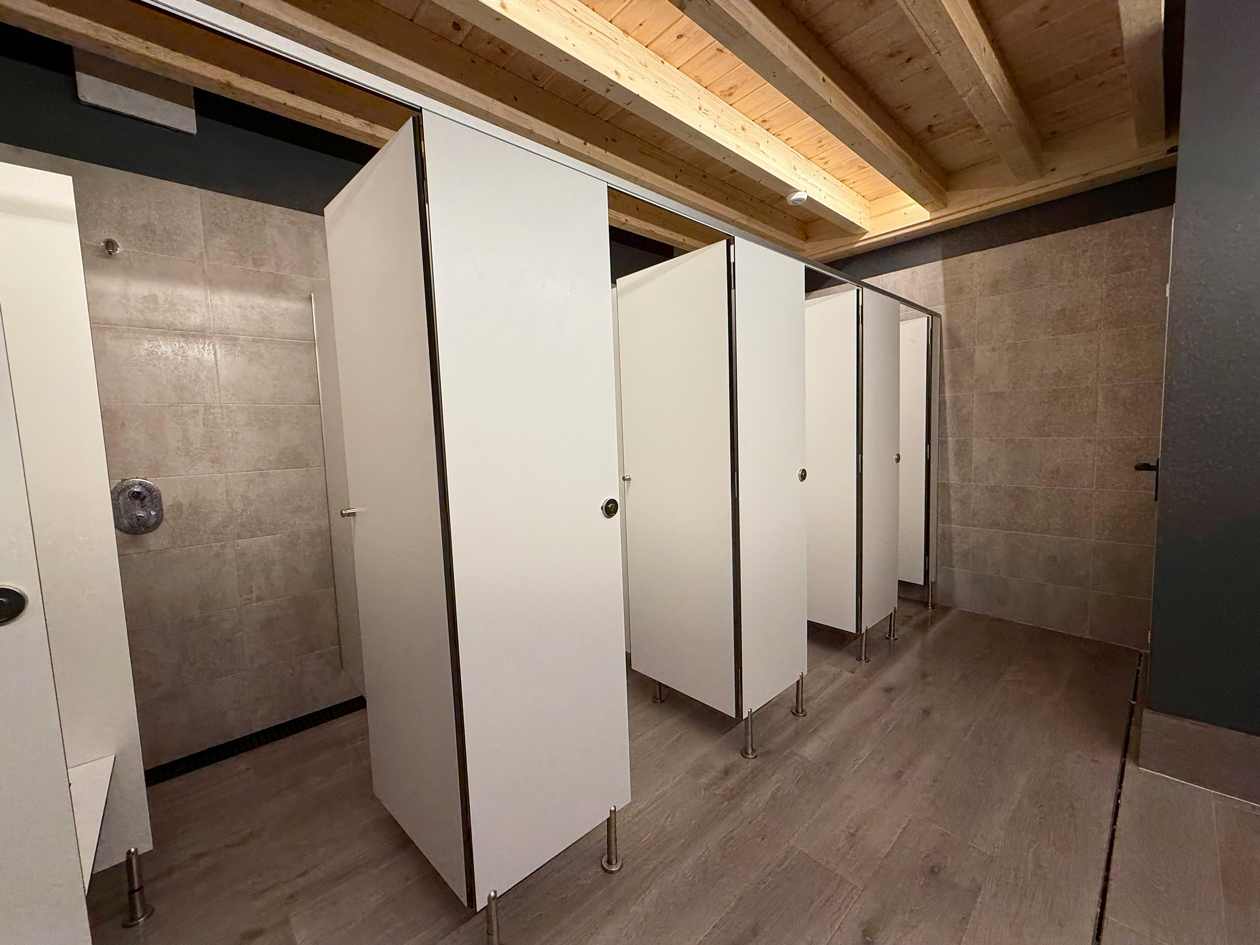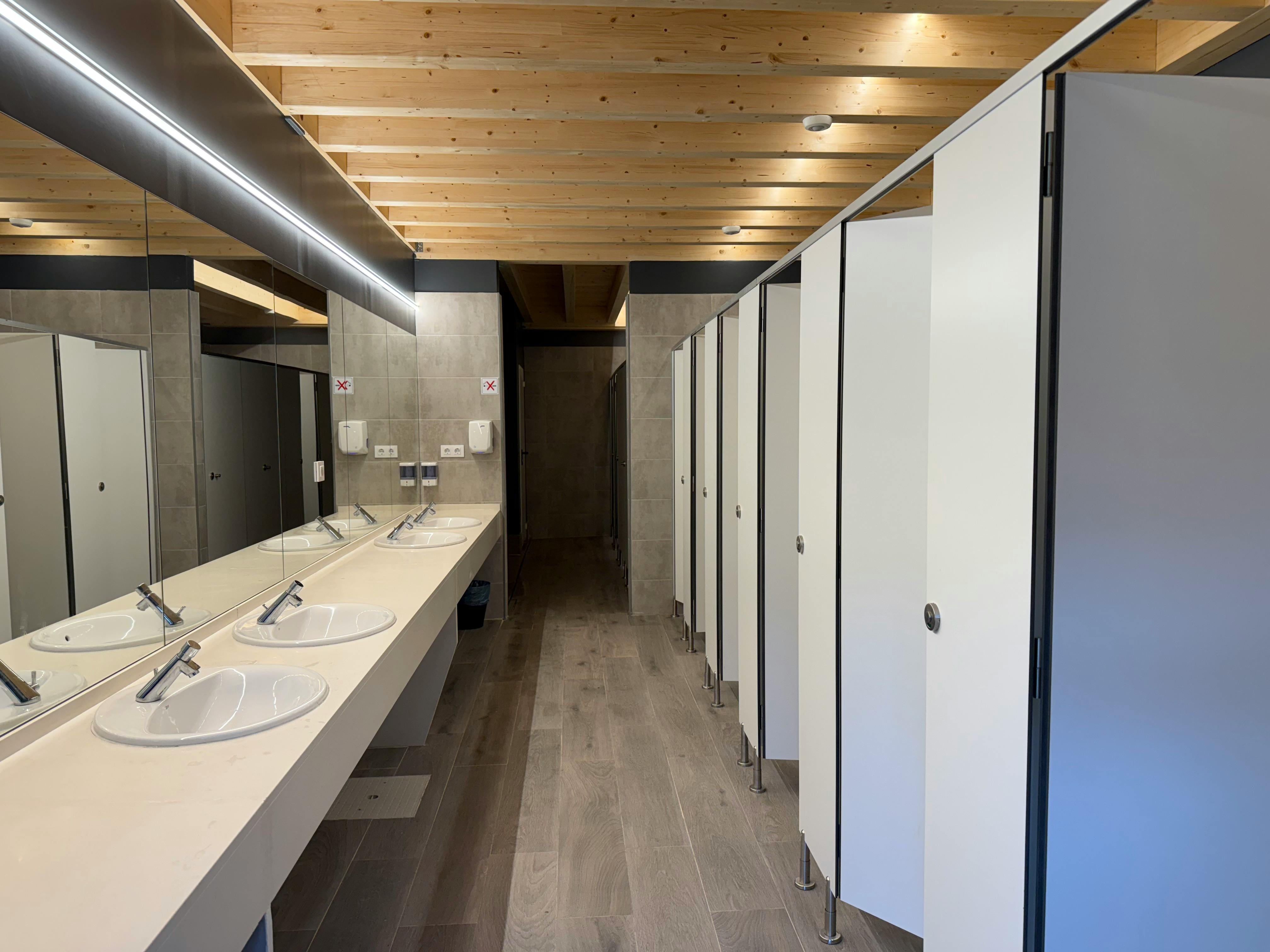 En los vestuarios, hay un amplio número de duchas y lavabos, con agua caliente gratuita.